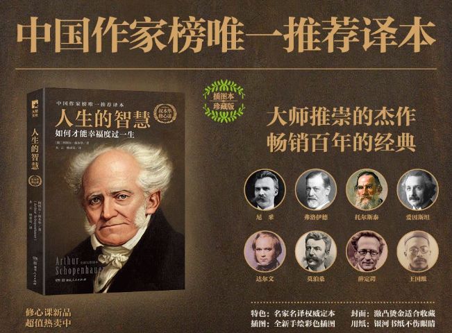 本书是叔本华1850年写的《附录和补遗》艺术的一部分。在书中,他以优雅的文体,格言式的笔触阐述了自己对人生的看法。《人生的智慧》使沉寂多年的叔本华在晚年一举成名。这本书讨论的事情与我们的世俗生活至为接近,诸如健康、财富、名声、荣誉、养生和待人接物所应遵守的原则等。正如叔本华所说的,在这本书里他尽量以世俗、实用的角度考虑问题。因此,这本书尤其适合大众阅读。虽然叔氏尽量放弃了居高俯临的审视角度,但关于错综复杂并因此众说纷纭的世俗人情的话题,经过这位思想大师一贯深刻而因此透彻的讨论之后,变得清晰简明,话题也几已穷尽矣。