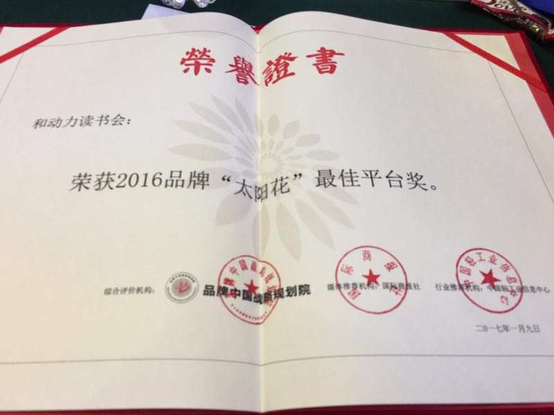 典礼现场汇聚了全国500余位企业家,横跨几十个专业领域,而最别具一格的品牌奖项莫过于“最佳品牌平台奖”,步入第九年的和动力读书会在众多书友的翘首期盼中跃然榜上。